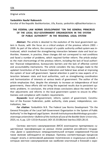 Статья посвящена эволюции системы местного самоуправления в России с акцентом на критический анализ предыдущей реформы, проведенной в период с 2003 по 2009 год. В рамках реформы была внедрена концепция единой системы публичной власти, которая предполагала укрепление взаимодействия между государственной и местной властью. Однако на практике эти изменения не соответствовали реальным условиям и столкнулись с рядом проблем, что потребовало дальнейшего реформирования. В статье анализируются основные недостатки предыдущей реформы, включая недостаточную финансовую самостоятельность местных органов, бюрократические барьеры и отсутствие эффективных механизмов контроля и подотчетности. Рассматриваются ключевые изменения, внесенные в обновленную Конституцию Российской Федерации и федеральные законы, направленные на улучшение системы местного самоуправления. Особое внимание уделяется новым аспектам взаимодействия между государственной и местной властью, таким как усиление координации и гармонизация интересов на различных уровнях управления. Автор статьи подчеркивает, что, несмотря на попытки повысить самостоятельность местных органов самоуправления, эти усилия не принесли ожидаемых результатов из-за сохраняющихся системных проблем. В заключение статьи делаются выводы о необходимости дальнейших корректировок и реформ в системе местного самоуправления для обеспечения ее эффективности и соответствия современным требованиям.
