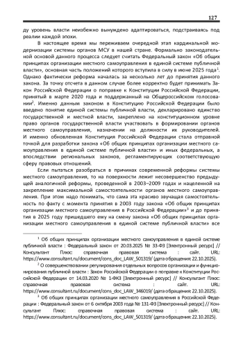 1. Степанов М.М. Местное самоуправление в контексте конституционной реформы 2020 года / М.М. Степанов // Актуальные проблемы российского права. - 2021. - Т.16, № 5 (126). - С. 35-41. EDN: AYLVGB