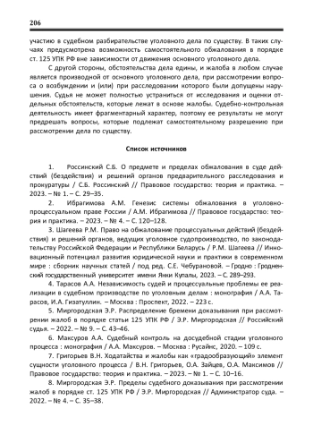 3. Шагеева Р.М. Право на обжалование процессуальных действий (бездействия) и решений органов, ведущих уголовное судопроизводство, по законодательству Российской Федерации и Республики Беларусь / Р.М. Шагеева // Инновационный потенциал развития юридической науки и практики в современном мире: сборник научных статей / под ред. С.Е. Чебурановой. - Гродно: Гродненский государственный университет имени Янки Купалы, 2023. - С. 289-293. EDN: OSLPCX