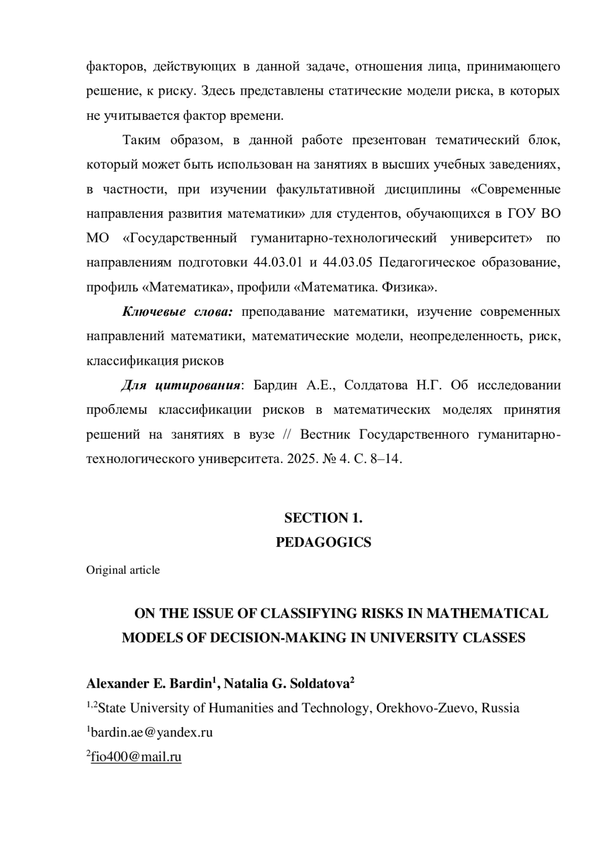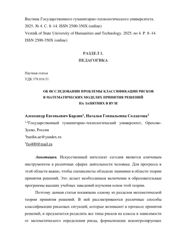Поскольку статья имеет не только научную, но и методическую направленность, её результаты могут представлять интерес как для преподавателей, так и для студентов вузов.