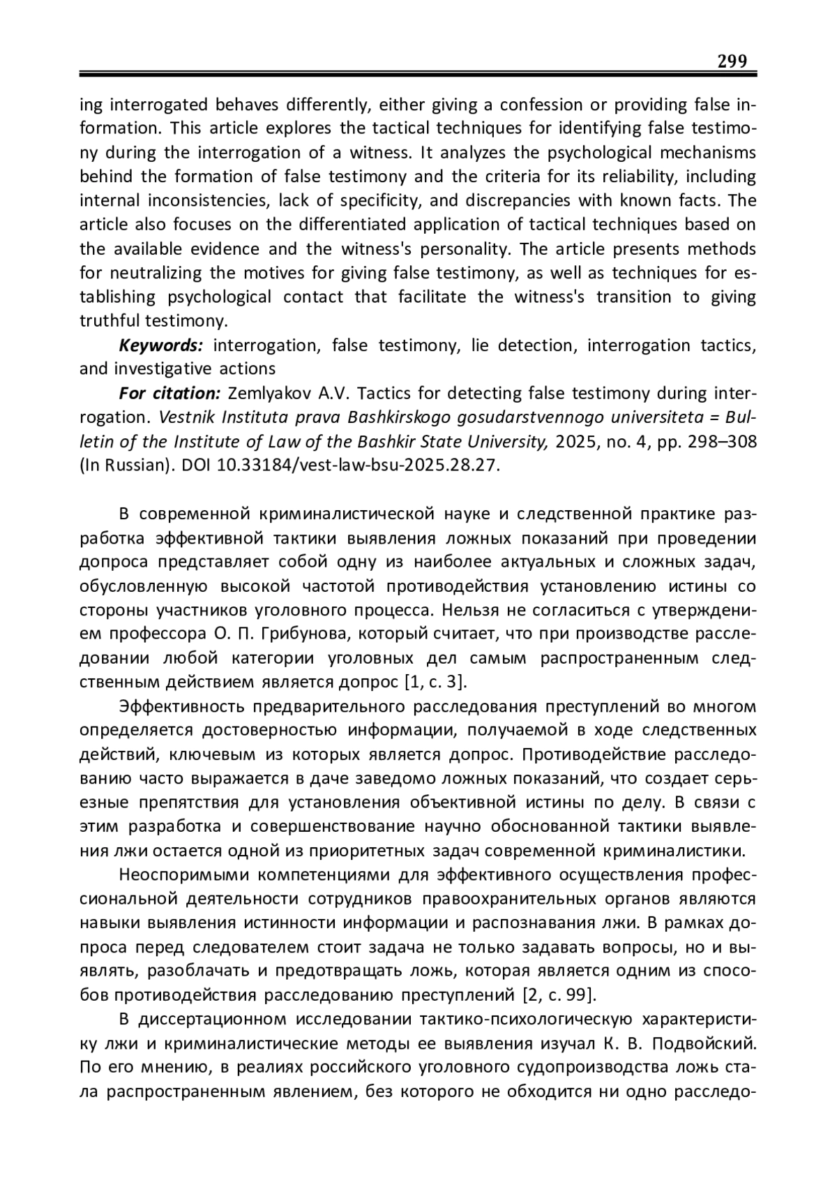 3. Подвойский К.В. Тактико-психологическая характеристика лжи и криминалистические методы ее выявления: автореф. дис.. канд. юрид. наук 12.00.12 / К.В. Подвойский. - Москва, 2021. - 24 с. EDN: TSQOAY