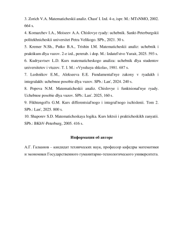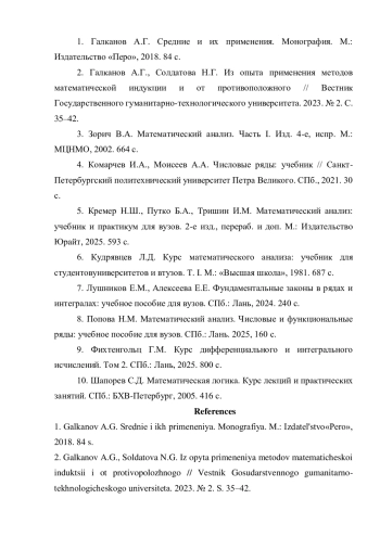 8. Попова Н.М. Математический анализ. Числовые и функциональные ряды: учебное пособие для вузов. СПб.: Лань. 2025, 160 с.