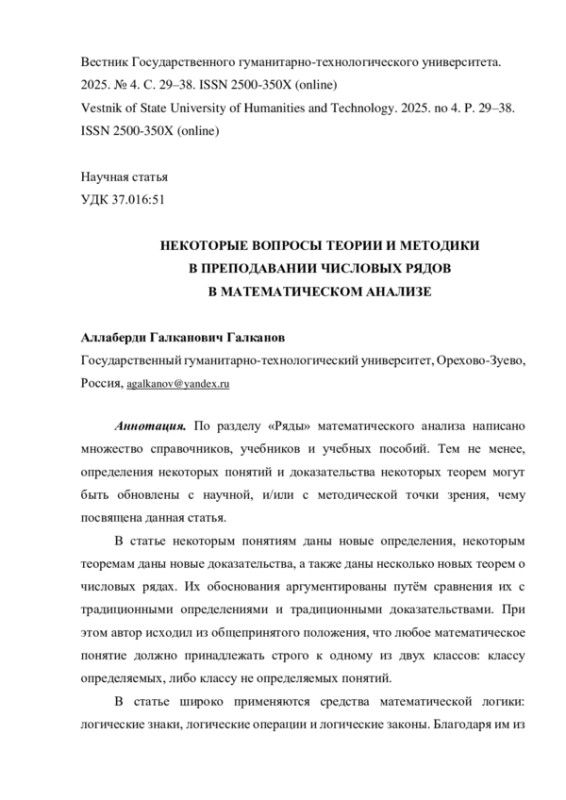 4. Комарчев И.А., Моисеев А.А. Числовые ряды: учебник // Санкт-Петербургский политехнический университет Петра Великого. СПб., 2021. 30 с.