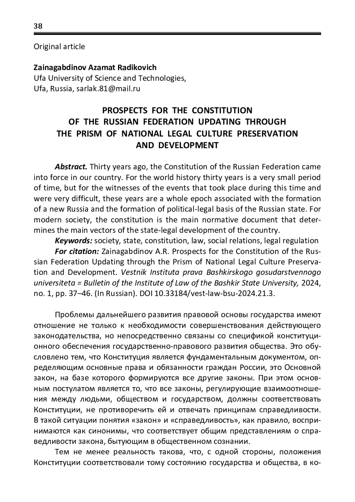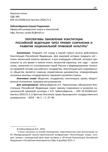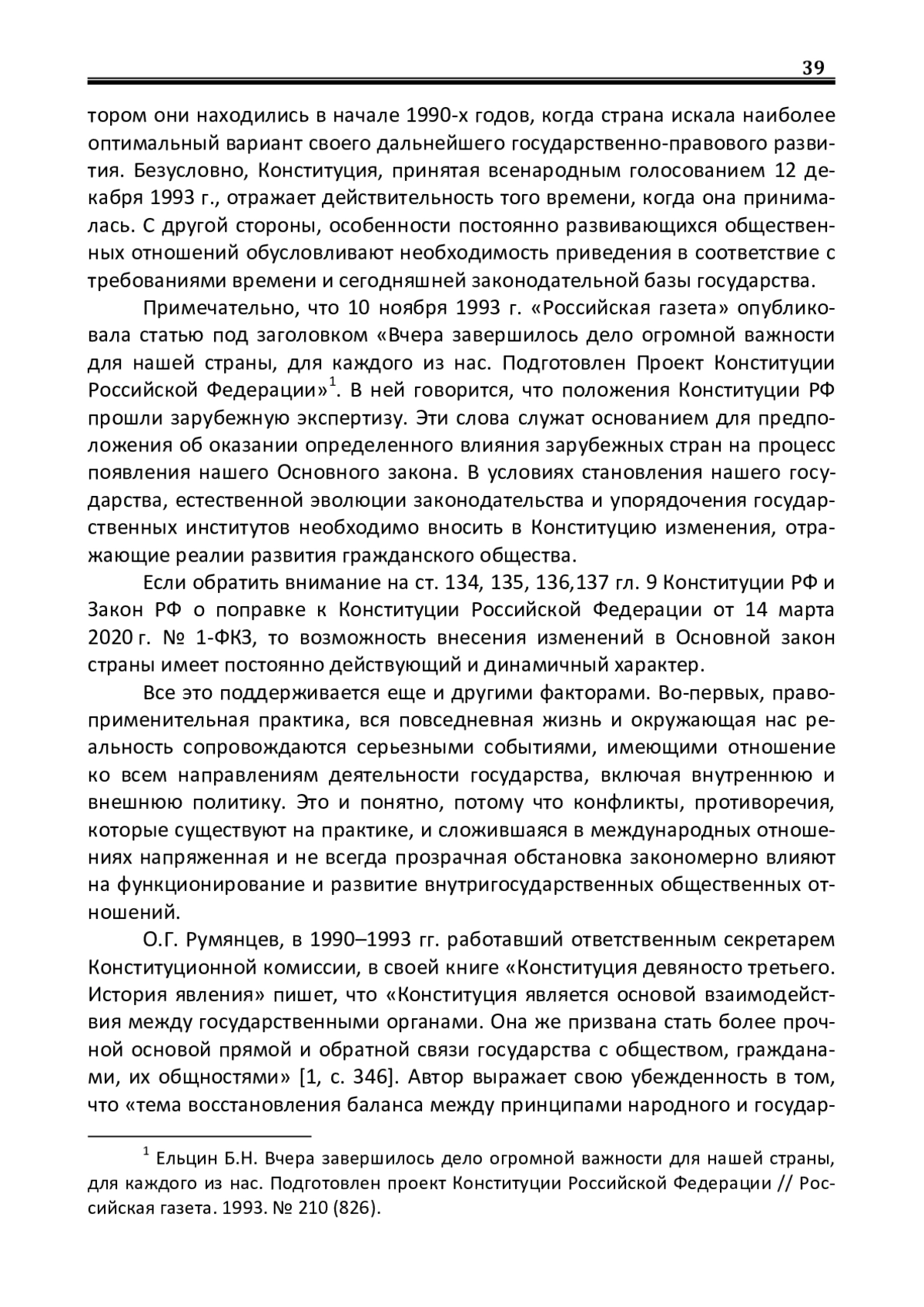 Тридцать лет назад в нашей стране начала действовать Конституция Российской Федерации. Для мировой истории тридцать лет – очень маленький отрезок времени, а для очевидцев событий, которые произошли за это время и имели очень непростой характер, эти годы – целая эпоха, связанная со становлением новой России и формированием политико-правовой основы российского государства. Конституция для современного общества является главным нормативным документом, определяющим основные векторы государственно-правового развития страны