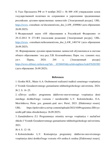 2. “Живые узелки”: программа духовно-нравственного воспитания детей старшего дошкольного возраста / разработчики Л.В. Коломийченко, О.А. Меньшикова; Перм. гос. гуманит.-пед. ун-т. Пермь, 2021. [Электронный ресурс]. URL: https://polovodova.ru/wp-content/uploads/2021/10/Programma-ZHivye-uzelki.pdf (дата обращения: 26.09.2025).