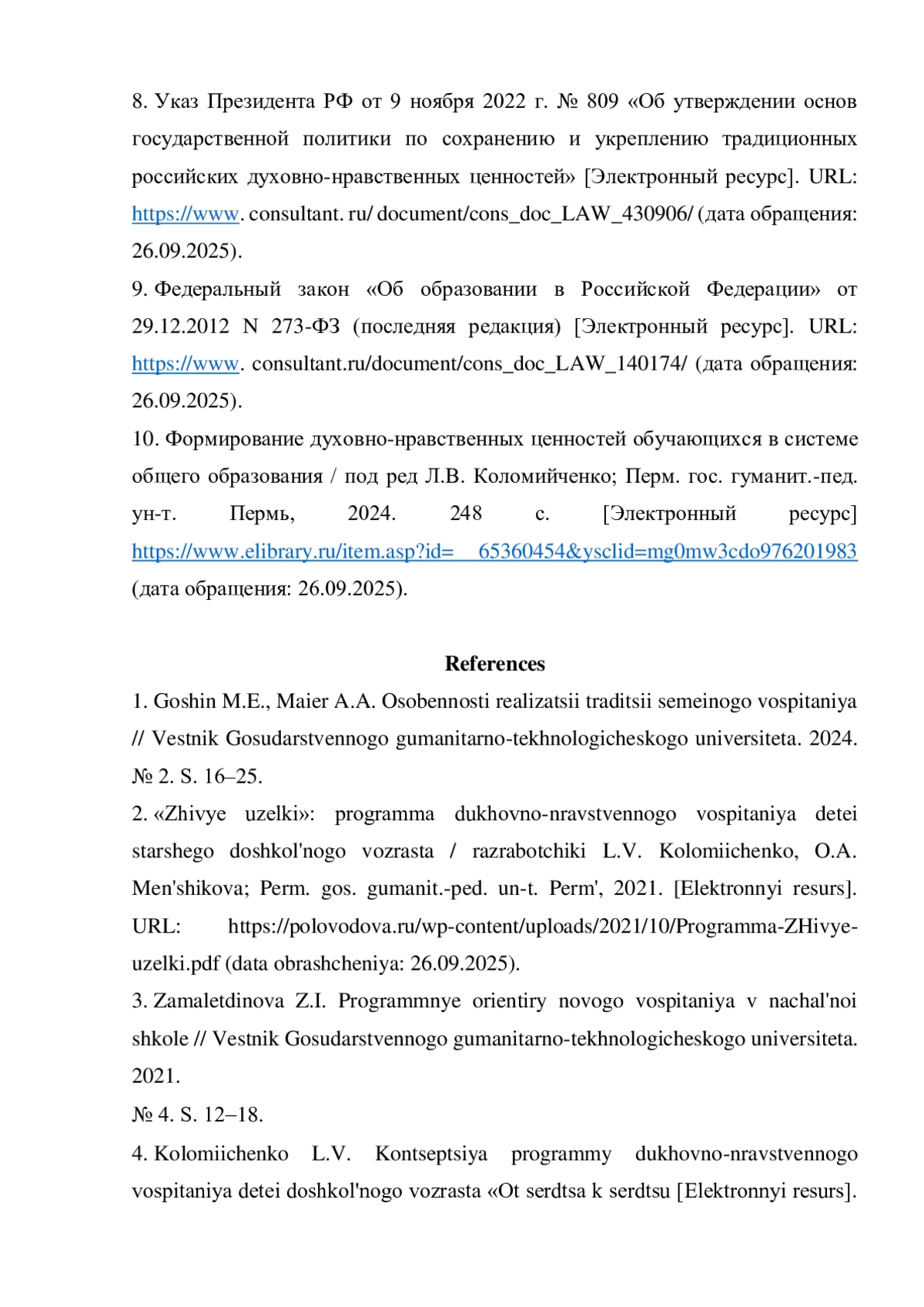 10. Формирование духовно-нравственных ценностей обучающихся в системе общего образования / под ред Л.В. Коломийченко; Перм. гос. гуманит.-пед. ун-т. Пермь, 2024. 248 с. [Электронный ресурс] https://www.elibrary.ru/item.asp?id=65360454&ysclid=mg0mw3cdo976201983(датаобращения:26.09.2025).