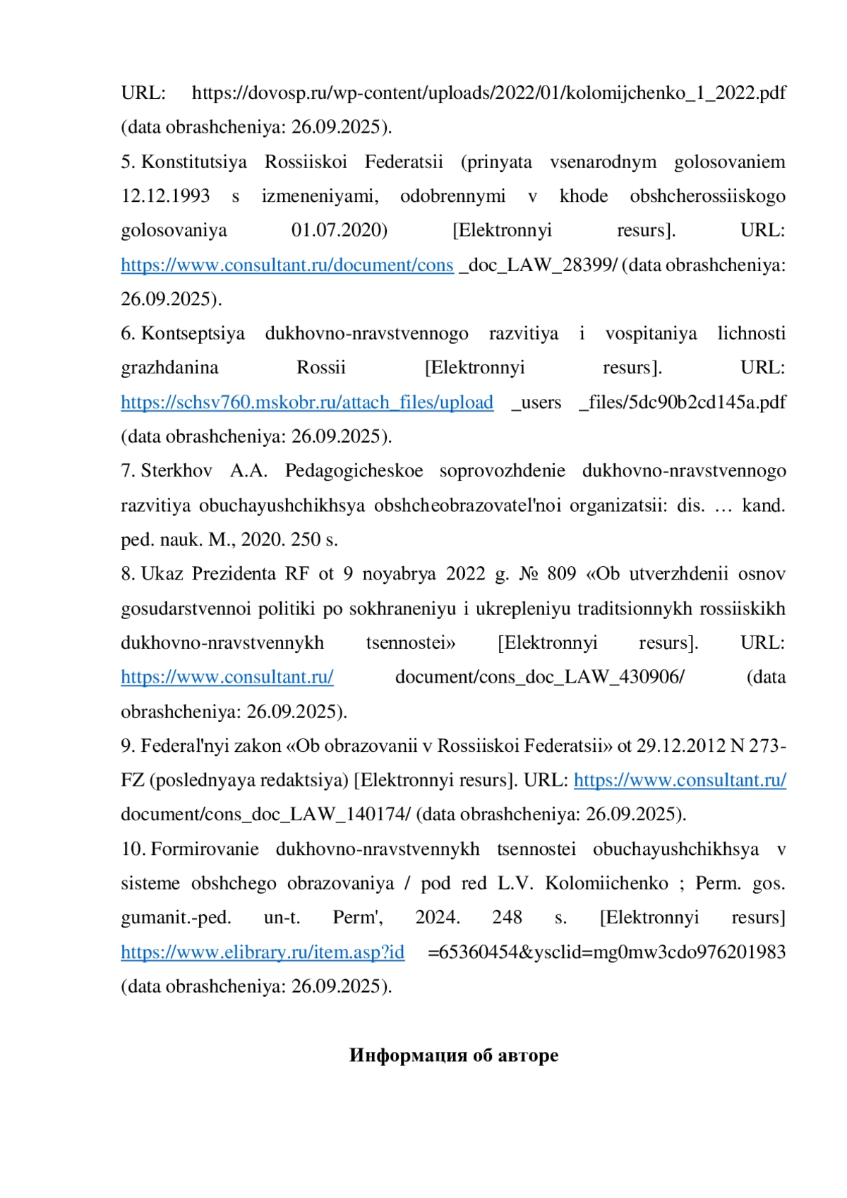 9. Федеральный закон “Об образовании в Российской Федерации” от 29.12.2012 N 273-ФЗ (последняя редакция) [Электронный ресурс]. URL: https://www.consultant.ru/document/cons_doc_LAW_140174/(датаобращения:26.09.2025).