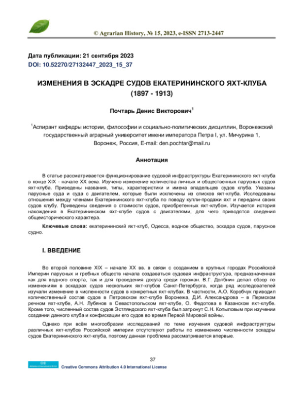 3. Korobchuk A.O. Sozdanie yaht-kluba v Voronezhe. Sozvezdie. 2013. Nomer 1. S. 91-110.
