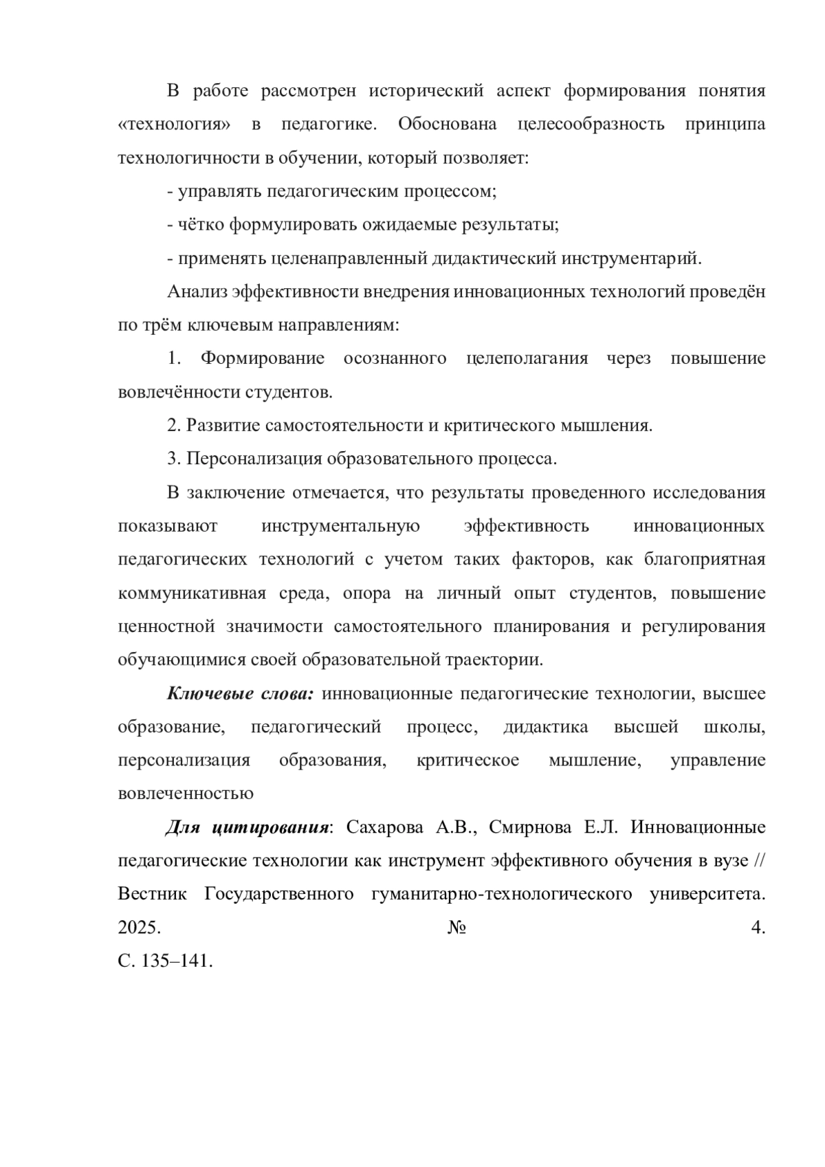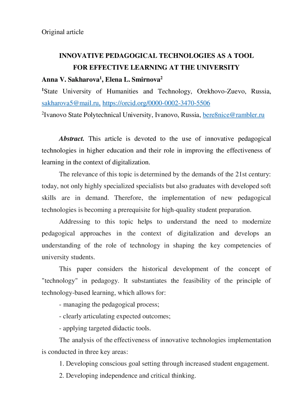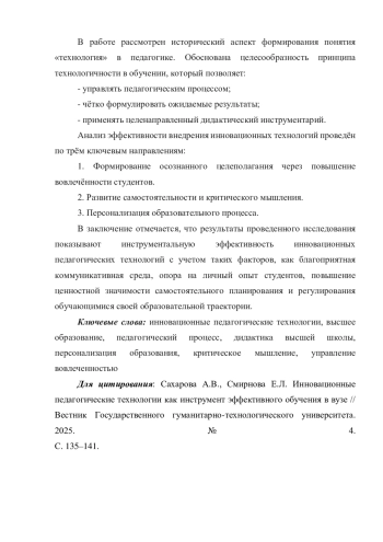 Обращение к этой теме способствует осознанию необходимости модернизации педагогических подходов в условиях цифровизации общества, развивает понимание роли технологий в формировании ключевых компетенций обучающихся вузов.