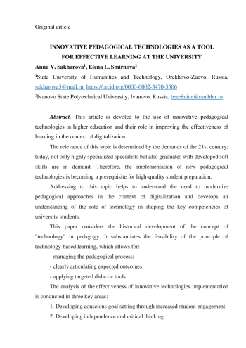 Статья посвящена применению инновационных педагогических технологий в высшем образовании и их роли в повышении эффективности обучения в условиях цифровизации.
