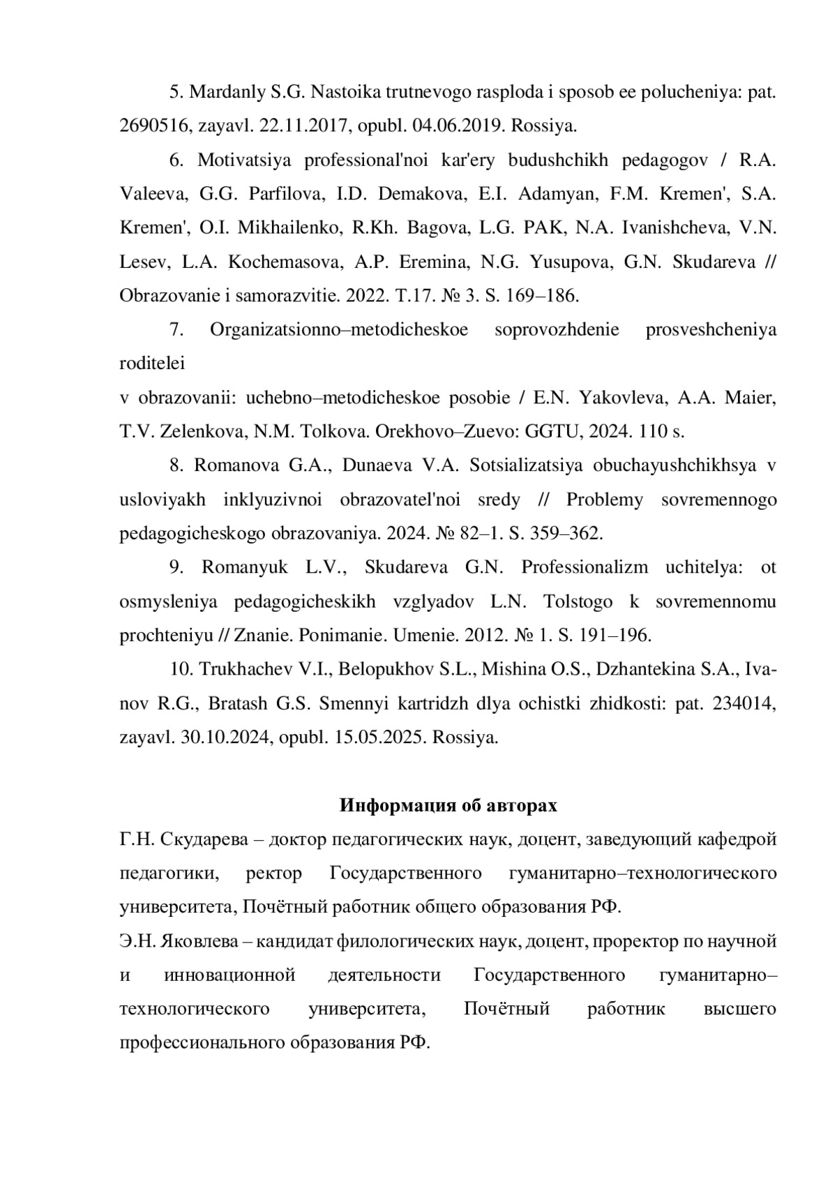 6. Мотивация профессиональной карьеры будущих педагогов / Р.А. Валеева, Г.Г. Парфилова, И.Д. Демакова, Е.И. Адамян, Ф.М. Кремень, С.А. Кремень, О.И. Михайленко, Р.Х. Багова, Л.Г. ПАК, Н.А. Иванищева, В.Н. Лесев, Л.А. Кочемасова, А.П. Еремина, Н.Г. Юсупова, Г.Н. Скударева // Образование и саморазвитие. 2022. Т.17. № 3. С. 169-186. EDN: CQFTGX