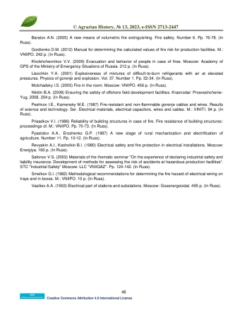 3. Baratov A.N. (2005) A new means of volumetric fire extinguishing. Fire safety. Number 6. Pp. 76-78. (In Russ).