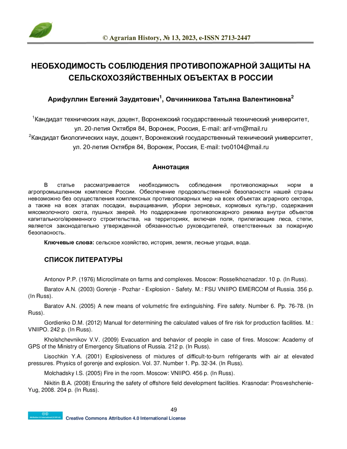 2. Baratov A.N. (2003) Gorenje - Pozhar - Explosion - Safety. M.: FSU VNIIPO EMERCOM of Russia. 356 p. (In Russ).