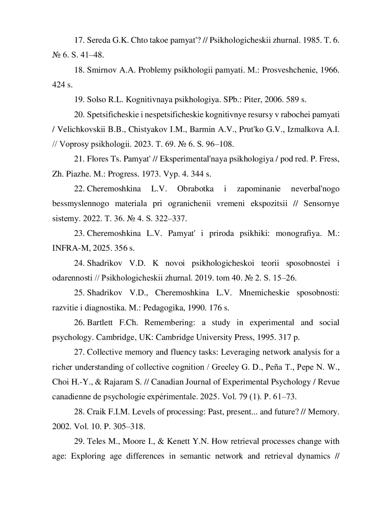 29. Teles M., Moore I., & Kenett Y.N. How retrieval processes change with age: Exploring age differences in semantic network and retrieval dynamics // Canadian Journal of Experimental Psychology / Revue canadienne de psychologie expérimentale. 2025. Vol. 79 (1). Р. 109-123.