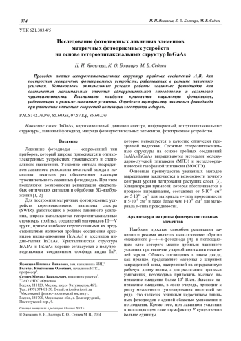 Яковлева Н. И., Болтарь К. О., Седнев М. В. Исследование фотодиодных лавинных элементов матричных фотоприемных устройств на основе гетероэпитаксиальных структур InGaAs 374