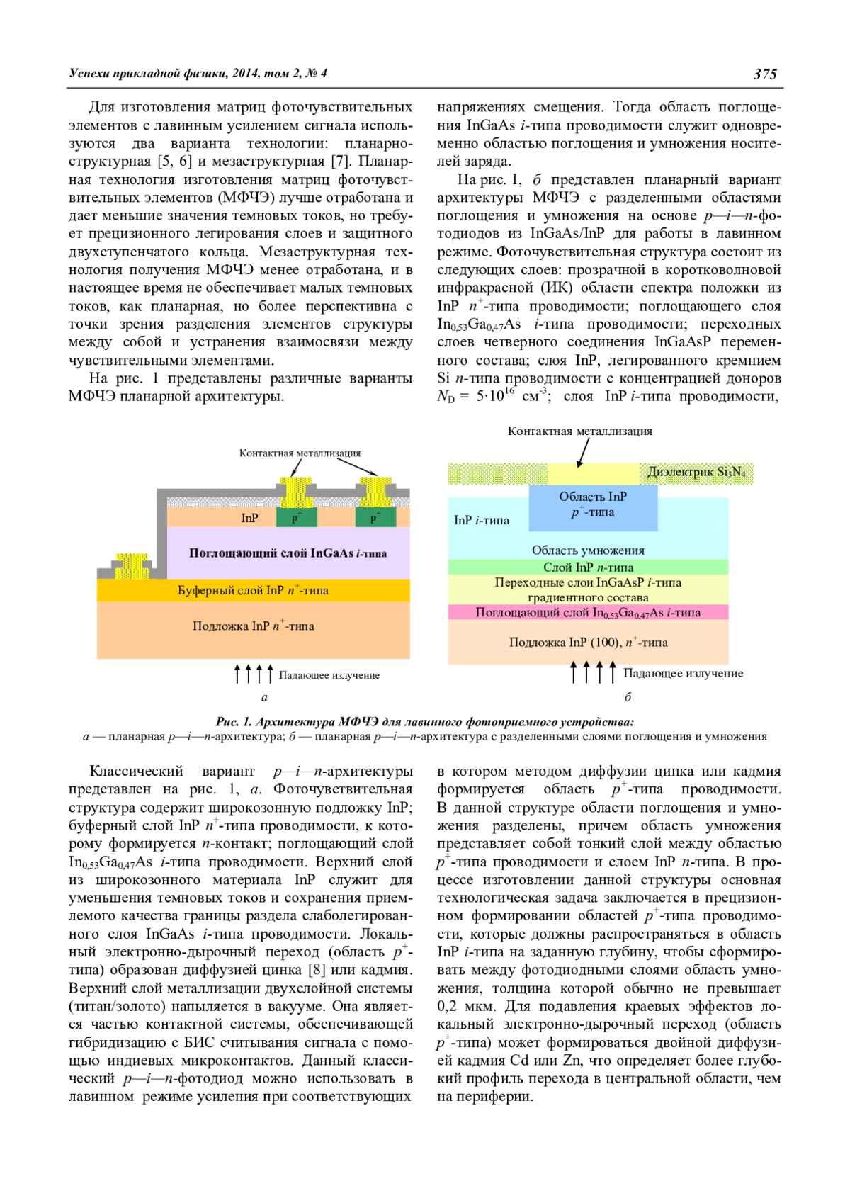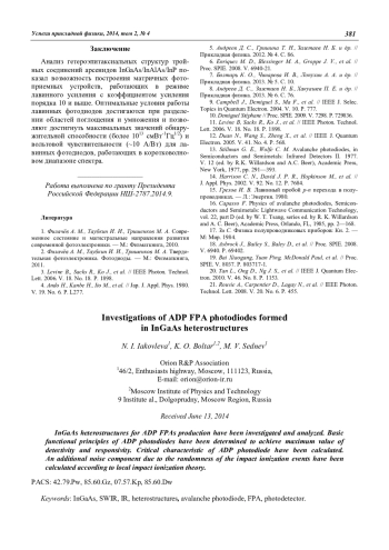 I. D. Burlakov, A. A. Drugova, V. A. Kholodnov The principles of analytical method of optimization of structure parameters of avalanche heterophotodi-odes with separate regions of absorption and multiplication 393