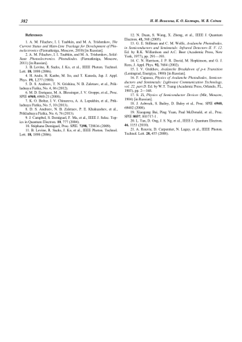 13. Stillman G. E., Wolfe C. M. Avalanche photodiodes, in Semiconductors and Semimetals: Infrared Detectors II. 1977.