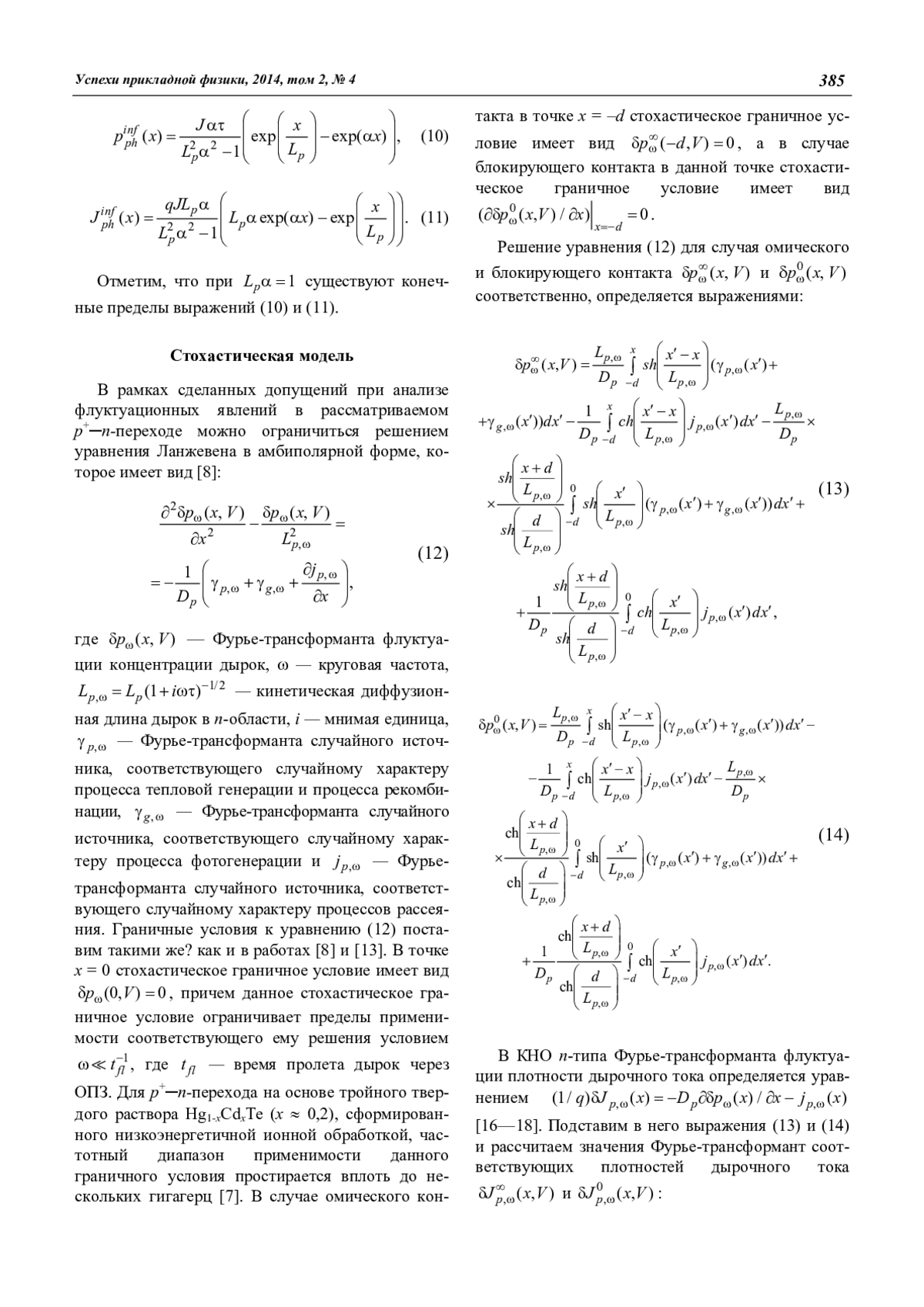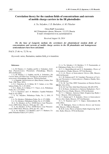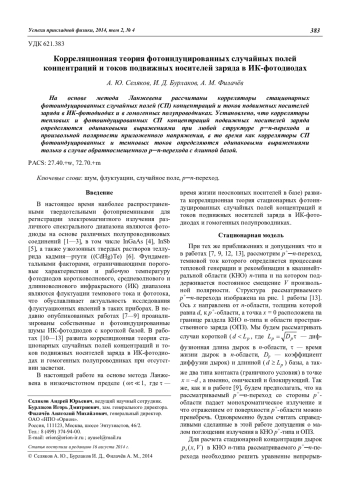 Селяков А. Ю., Бурлаков И. Д., Филачёв А. М. Корреляционная теория фотоиндуцированных случайных полей концентраций и токов подвижных носителей заряда в ИК-фотодиодах 383