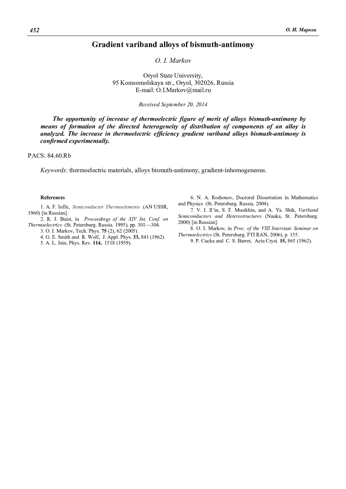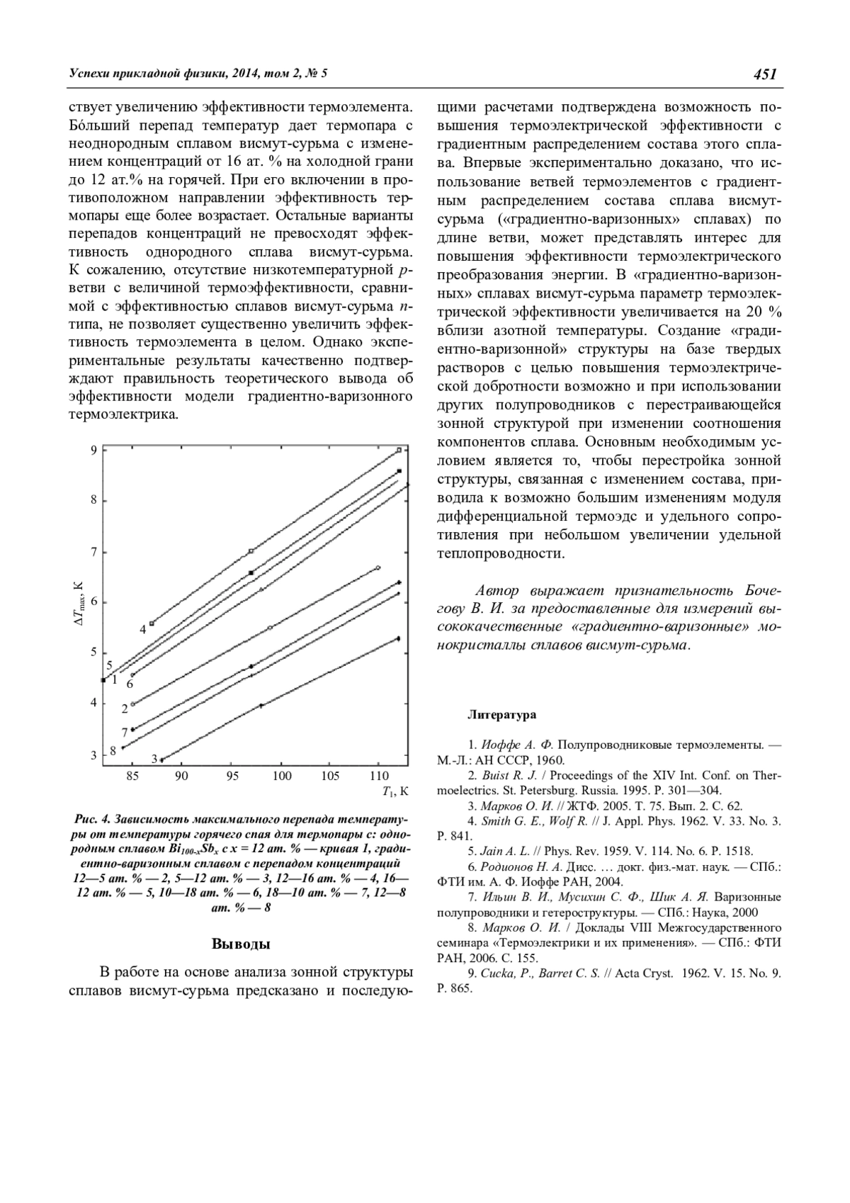Марков О. И. Градиентно-варизонные сплавы висмут-сурьма 447