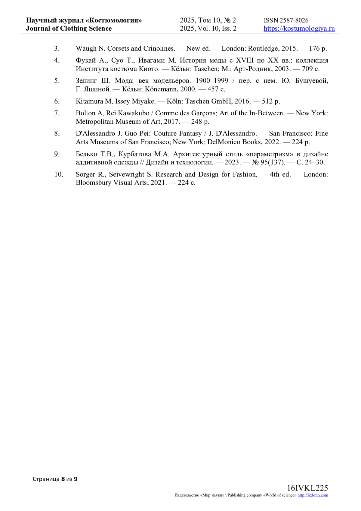 10. Sorger R., Seivewright S. Research and Design for Fashion. - 4th ed. - London: Bloomsbury Visual Arts, 2021. - 224 с.