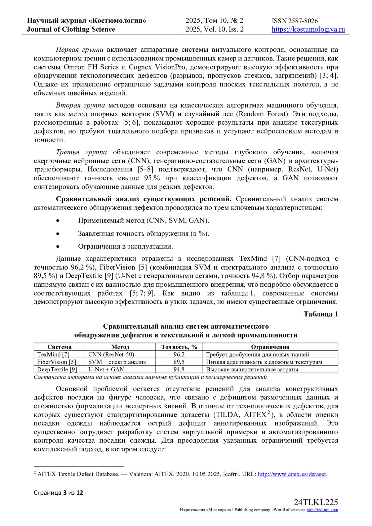 5. Kumar A. Texture Defect Detection Using Support Vector Machines // Journal of Textile Engineering. - 2020. - Vol. 66, № 4. - P. 112-120.