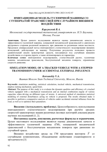 КОРСУНСКИЙ В. А. ИМИТАЦИОННАЯ МОДЕЛЬ ГУСЕНИЧНОЙ МАШИНЫ СО СТУПЕНЧАТОЙ ТРАНСМИССИЕЙ ПРИ СЛУЧАЙНОМ ВНЕШНЕМ ВОЗДЕЙСТВИИ