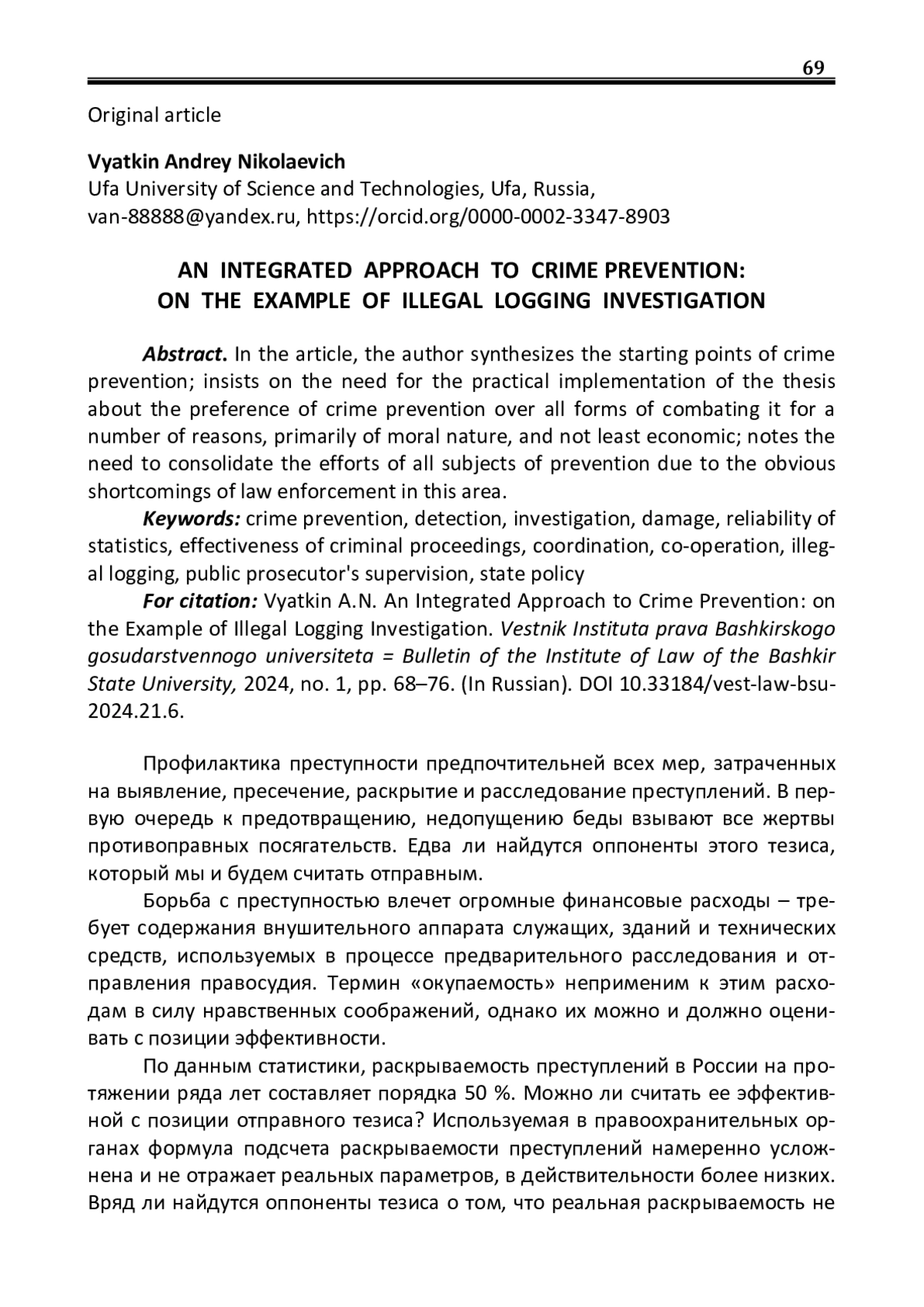 2. Вяткин А.Н. Актуальные вопросы возмещения вреда от незаконных лесных рубок / А.Н. Вяткин // Вестник Института права Башкирского государственного университета. - 2021. - № 4 (12). - С. 131-136. EDN: YZZYVR