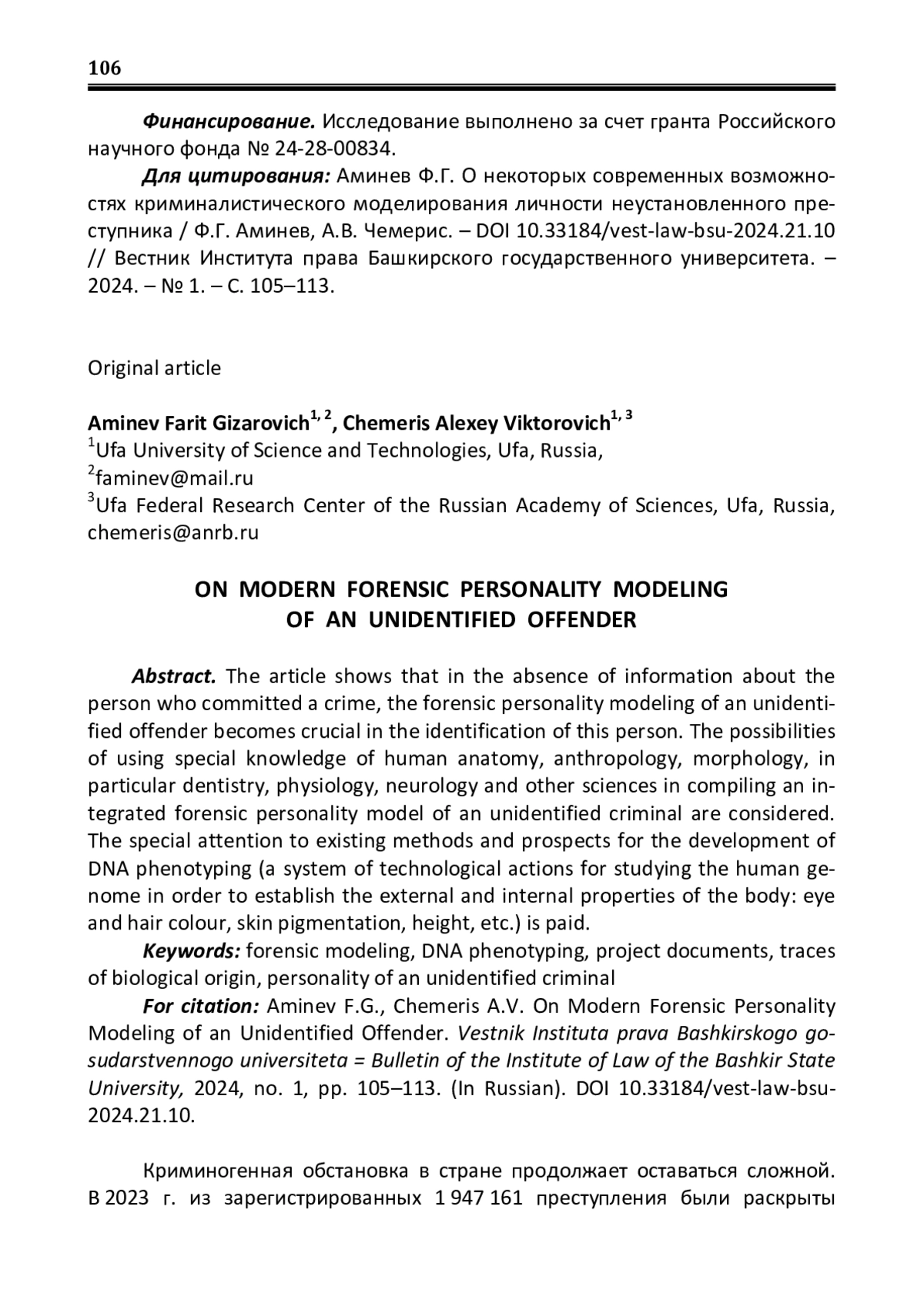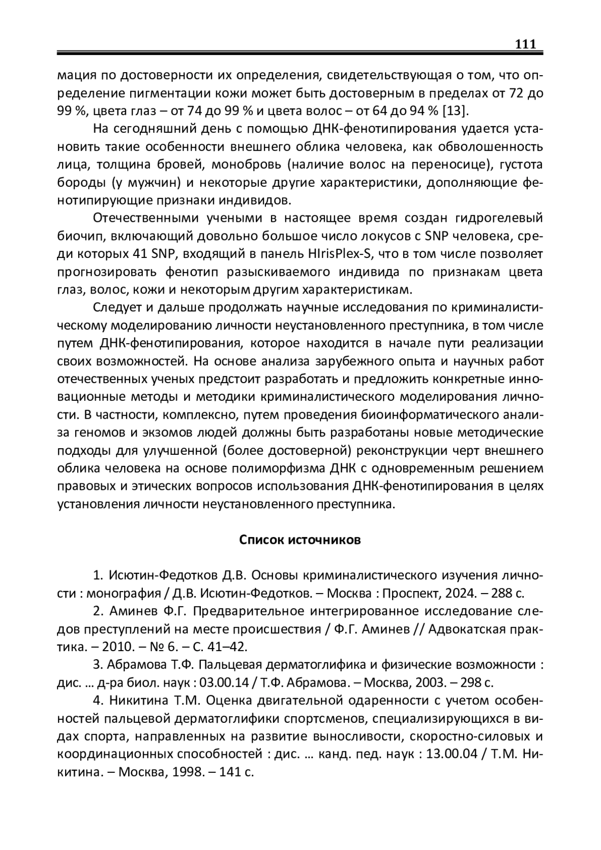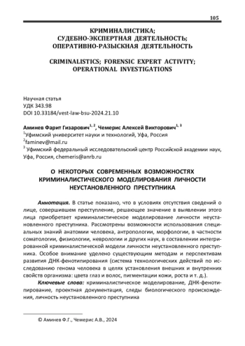 В статье показано, что в условиях отсутствия сведений о лице, совершившем преступление, решающее значение в выявлении этого лица приобретает криминалистическое моделирование личности неустановленного преступника. Рассмотрены возможности использования специальных знаний анатомии человека, антропологии, морфологии, в частности соматологии, физиологии, неврологии и других наук, в составлении интегрированной криминалистической модели личности неустановленного преступника. Особое внимание уделено существующим методам и перспективам развития ДНК-фенотипирования (система технологических действий по исследованию генома человека в целях установления внешних и внутренних свойств организма: цвета глаз и волос, пигментации кожи, роста и т. д.)