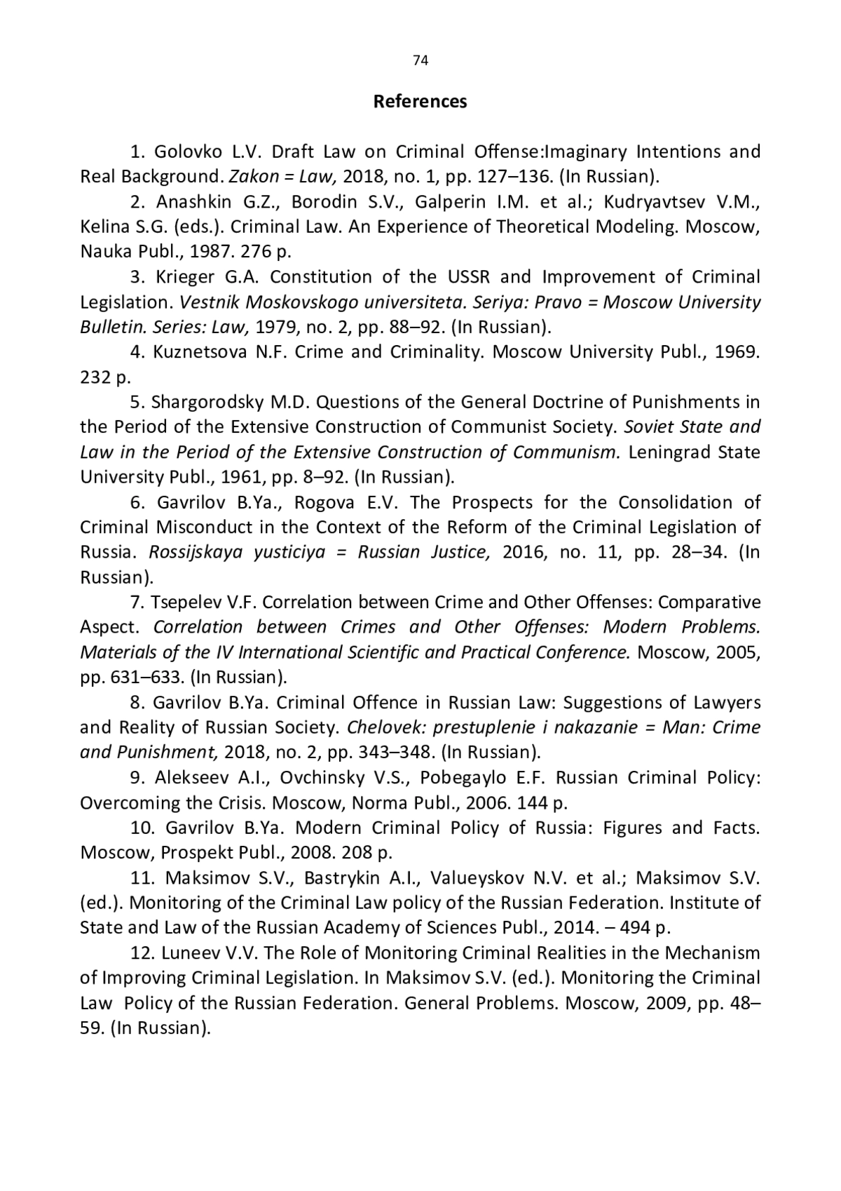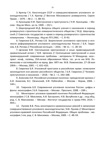 10. Гаврилов Б.Я. Современная уголовная политика России: цифры и факты: монография / Б.Я. Гаврилов. - Москва: Проспект, 2008. - 208 с. EDN: QQMNYX