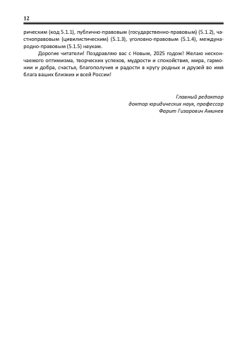 Подходит к концу 2024 год. Он оставляет незабываемый след в душе каждого представителя научного сообщества не только из-за того, что он знаменателен 100-летними юбилеями выдающихся ученых, участников Великой Отечественной войны, учителей многих поколений отечественных криминалистов и процессуалистов – профессоров Льва Львовича Каневского и Леонида Яковлевича Драпкина. Прошедший год был наполнен интересными событиями: юбилеями наших друзей, известных коллег, знаменитых профессоров Елены Рафаиловны Россинской, Александра Фомича Волынского, Надежды Павловны Майлис, Бориса Яковлевича Гаврилова, Татьяны Федоровны Моисеевой, которых мы еще раз поздравляем и желаем продолжения творческих успехов и научного долголетия!