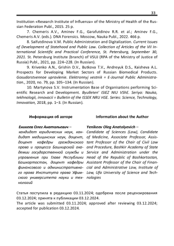 8. Сайфутдинова В.М. Государственное управление и цифровизация / В.М. Сайфутдинова // Актуальные вопросы развития государственности и публичного права: сборник статей VII Международной научно-практической конференции, Санкт-Петербург 30 сентября 2021 г. - Санкт-Петербург: Издательство Санкт-Петербургского института (филиала) ВГУЮ (РПА Минюста России), 2021. - С. 224-228. EDN: OFYYHQ