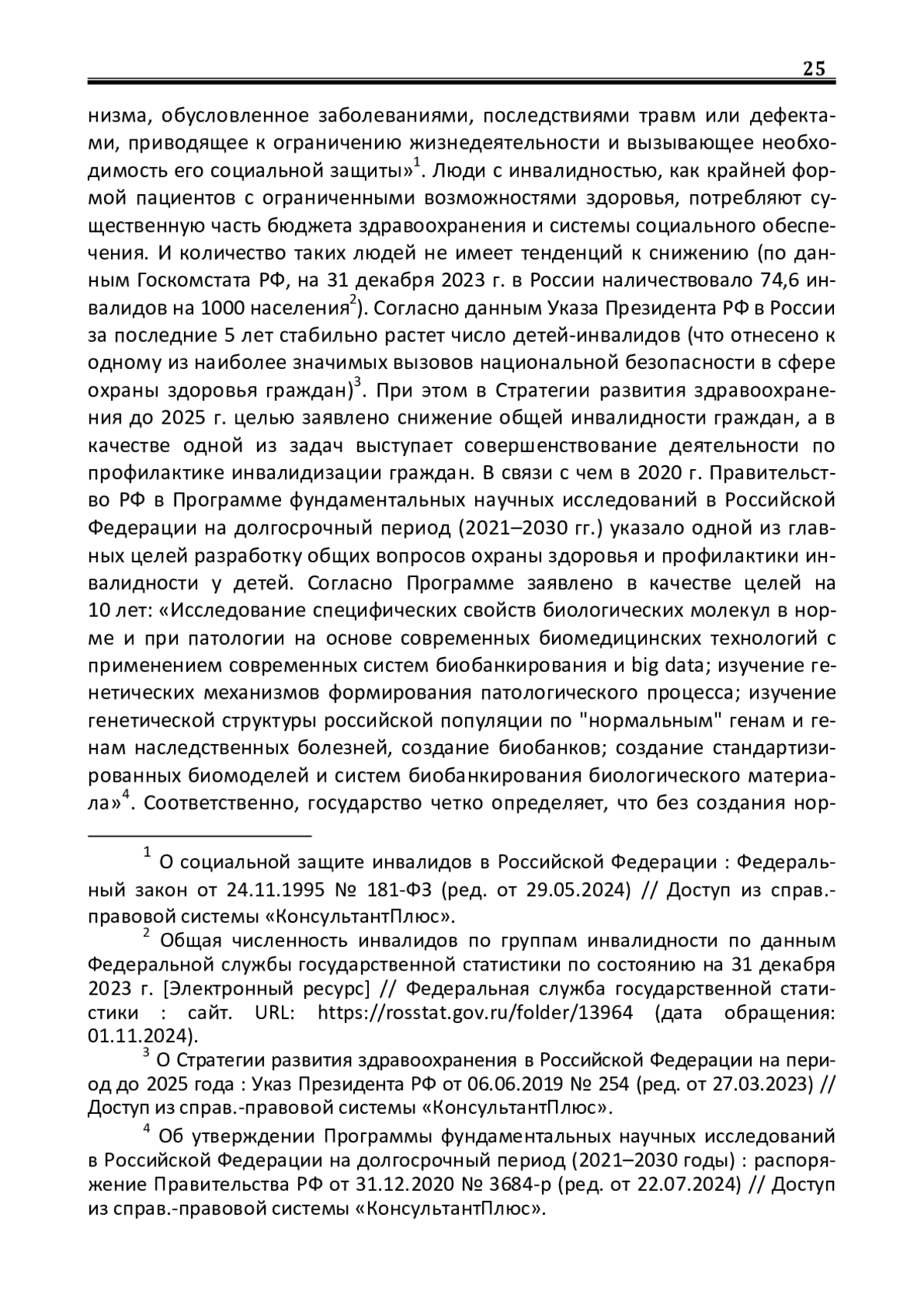 Введение. Согласно федеральному закону инвалид – это «лицо, которое имеет нарушение здоровья со стойким расстройством функций организма, обусловленное заболеваниями, последствиями травм или дефектами, приводящее к ограничению жизнедеятельности и вызывающее необходимость его социальной защиты»1. Люди с инвалидностью, как крайней формой пациентов с ограниченными возможностями здоровья, потребляют существенную часть бюджета здравоохранения и системы социального обеспечения. И количество таких людей не имеет тенденций к снижению (по данным Госкомстата РФ, на 31 декабря 2023 г. в России наличествовало 74,6 инвалидов на 1000 населения2). Согласно данным Указа Президента РФ в России за последние 5 лет стабильно растет число детей-инвалидов (что отнесено к одному из наиболее значимых вызовов национальной безопасности в сфере охраны здоровья граждан)3.