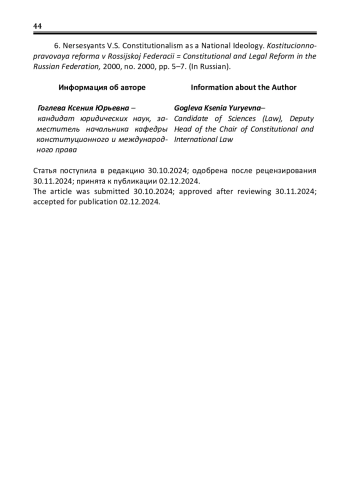6. Нерсесянц В.С. Конституционализм как общегосударственная идеология / В.С. Нерсесянц // Коституционно-правовая реформа в Российской Федерации. - 2000. - № 2000. - С. 5-7. EDN: UKNRYP