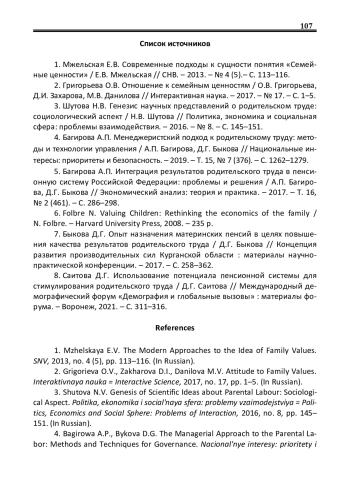 5. Багирова А.П. Интеграция результатов родительского труда в пенсионную систему Российской Федерации: проблемы и решения / А.П. Багирова, Д.Г. Быкова // Экономический анализ: теория и практика. - 2017. - Т. 16, № 2 (461). - С. 286-298. EDN: XWUNJH