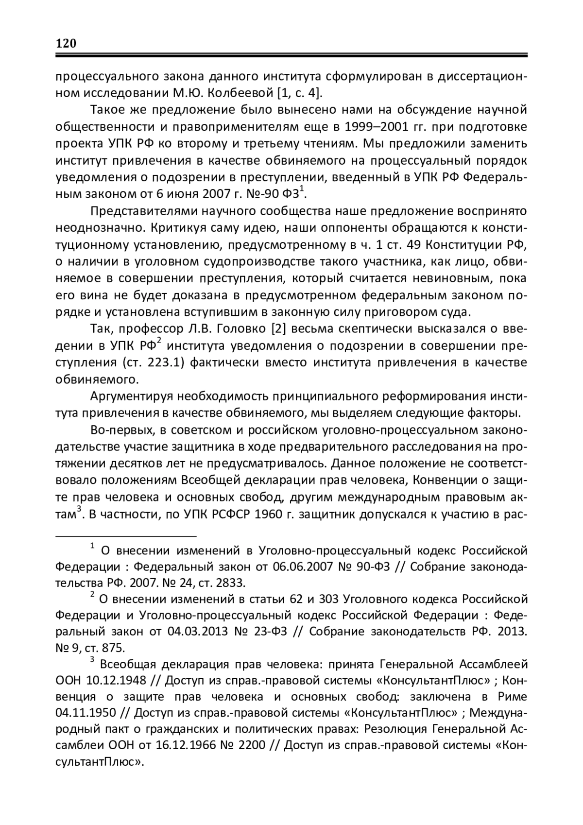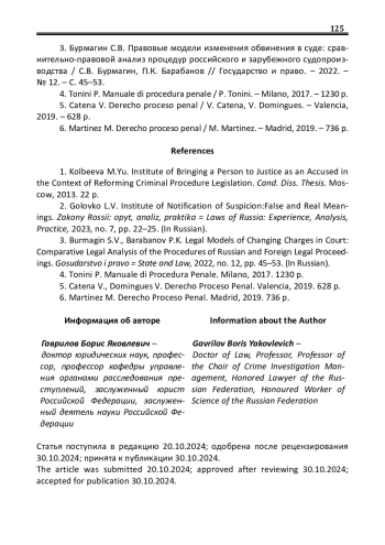 2. Головко Л.В. Институт уведомления о подозрении: мнимые и подлинные смыслы / Л.В. Головко // Законы России: опыт, анализ, практика. - 2023. - № 7. - С. 22-25. EDN: TAKSIB