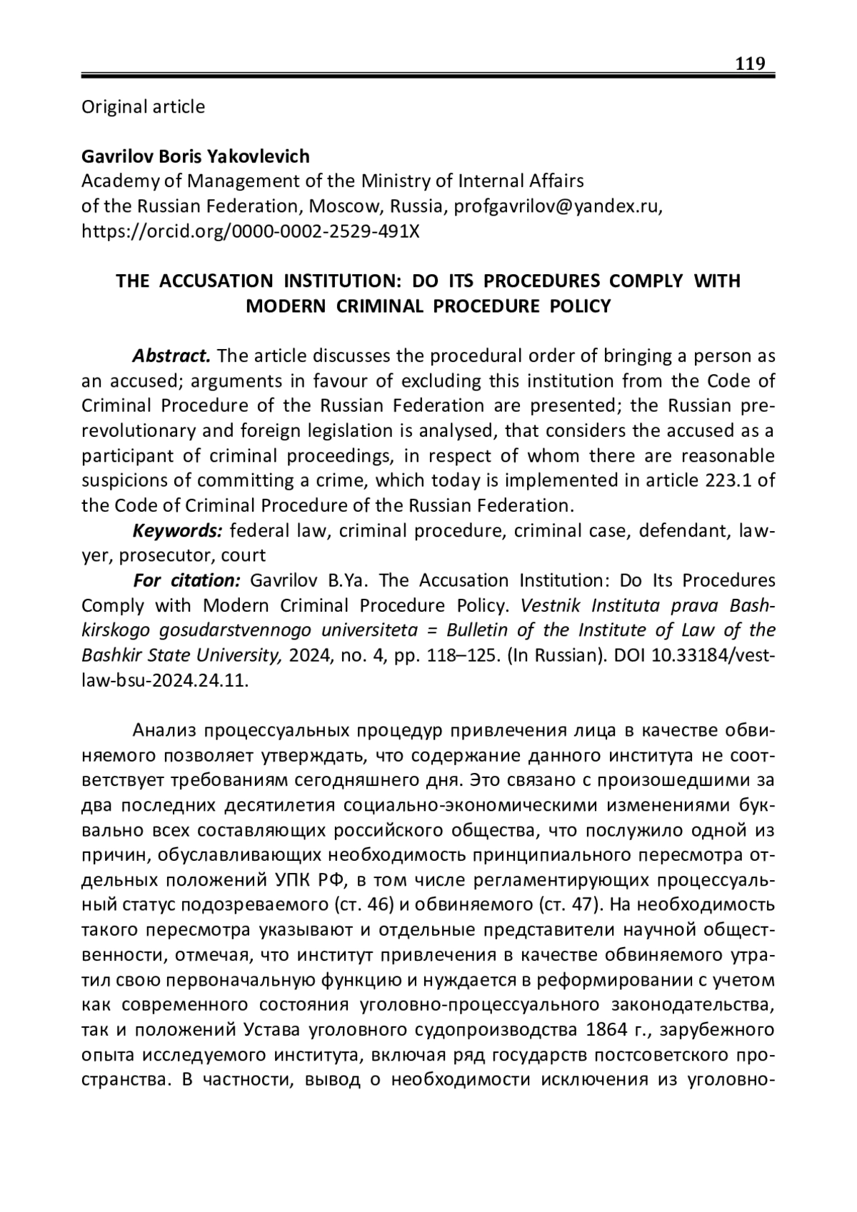 Анализ процессуальных процедур привлечения лица в качестве обвиняемого позволяет утверждать, что содержание данного института не соответствует требованиям сегодняшнего дня. Это связано с произошедшими за два последних десятилетия социально-экономическими изменениями буквально всех составляющих российского общества, что послужило одной из причин, обуславливающих необходимость принципиального пересмотра отдельных положений УПК РФ, в том числе регламентирующих процессуальный статус подозреваемого (ст. 46) и обвиняемого (ст. 47). На необходимость такого пересмотра указывают и отдельные представители научной общественности, отмечая, что институт привлечения в качестве обвиняемого утратил свою первоначальную функцию и нуждается в реформировании с учетом как современного состояния уголовно-процессуального законодательства, так и положений Устава уголовного судопроизводства 1864 г., зарубежного опыта исследуемого института, включая ряд государств постсоветского пространства