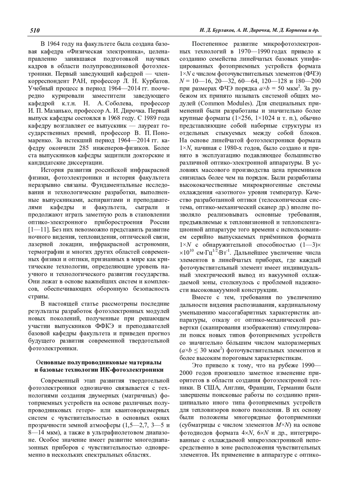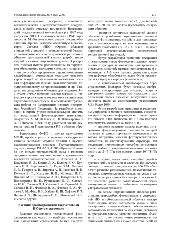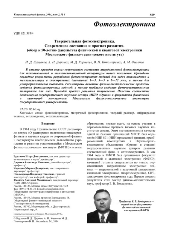 I. D. Burlakov, A. I. Dirochka, M. D. Korneeva, V. P. Ponomarenko, and A. M. Filachev Solid state photoelectronics: the current state and new prospects (Review on the 50th Anniversary of the Faculty of Physical and Quantum Electronics of the Moscow Physicotechnical Institute) 509