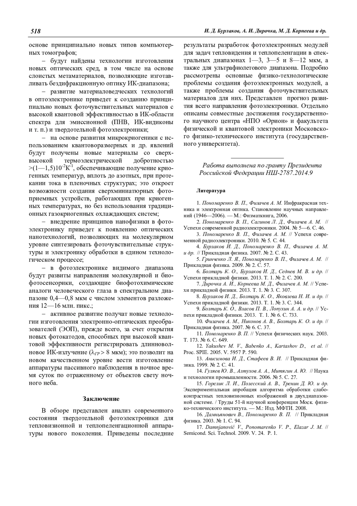 4. Бурлаков И. Д., Пономаренко В. П., Филачев А. М. и др. // Прикладная физика. 2007. № 2. С. 43.
