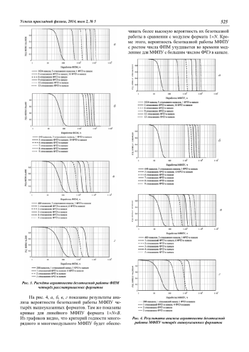Полученная аналитическая модель безотказности многорядного МФПУ позволила получить аналитические выражения, определяющие вероятности безотказной работы канала, модуля и МФПУ с учетом задаваемых критериев отказов, и показать, что безотказность многорядных устройств существенно лучше безотказности однорядных устройств. Полученные аналитические выражения позволяют получить конкретные численные значения вероятности безотказной работы канала, модуля и МФПУ, чьи времена безотказной работы много ниже этих же параметров сопровождающей микроэлектроники.