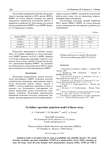 A. I. Patrashin, I. D. Burlakov, and G. A. Ivanov No-failure operation analytical model of linear array 520
