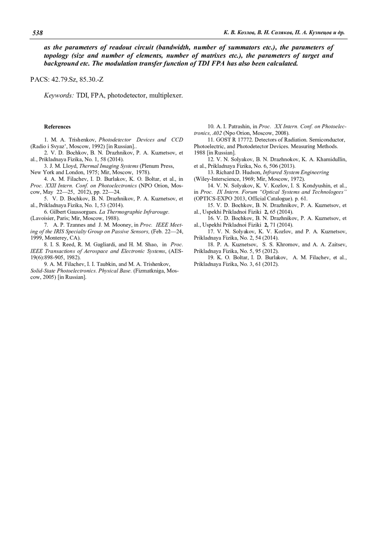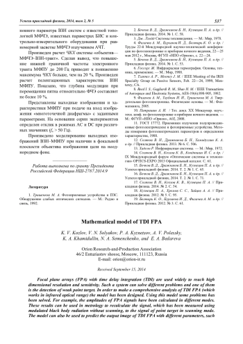 K. V. Kozlov, V. N. Solyakov, P. A. Kyznetsov, A. V. Polessky, K. A. Khamidullin, N. A. Semenchenko, and E. A. Bedareva Mathematical model of TDI FPA 528