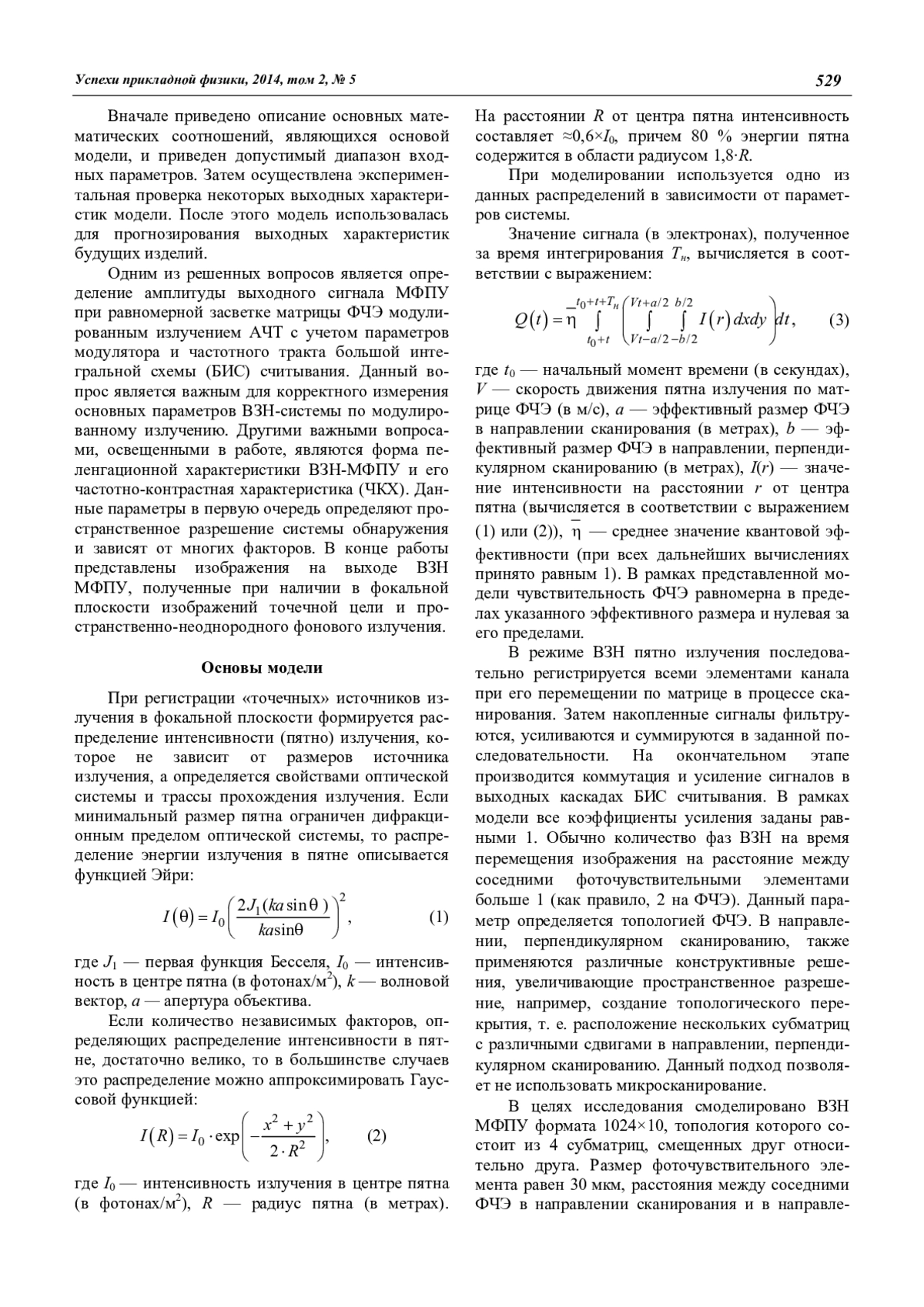 Козлов К. В., Соляков В. Н., Кузнецов П. А., Полесский А. В., Хамидуллин К. А., Семенченко Н. А., Бедарева Е. А. Исследование частотных характеристик многоразрядного МФПУ с режимом ВЗН 528