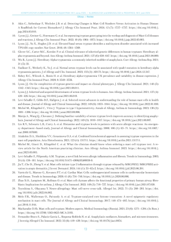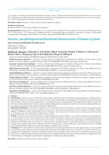 14. Faulkner E., Wetherly K., Yu J. et al. Normal serum tryptase levels can be associated with tpsab1 mutation in hereditary alpha tryptasemia patients. J of Allergy and Clin. Immunol. 2025; 155 (2): AB173. DOI: 10.1016/j.jaci.2024.12.547