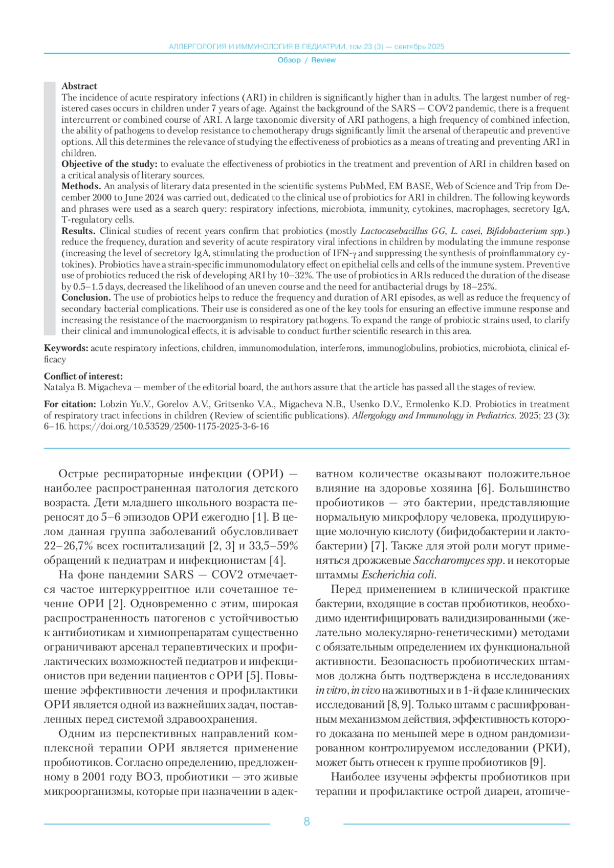 31. Lundelin K., Poussa T., Salminen S., Isolauri E. Long-term safety and efficacy of perinatal probiotic intervention. Pediatric Allergy and Immunology. 2017; 28 (2): 170-175. 10.1111/pai.12675 11. DOI: 10.1111/pai.1267511