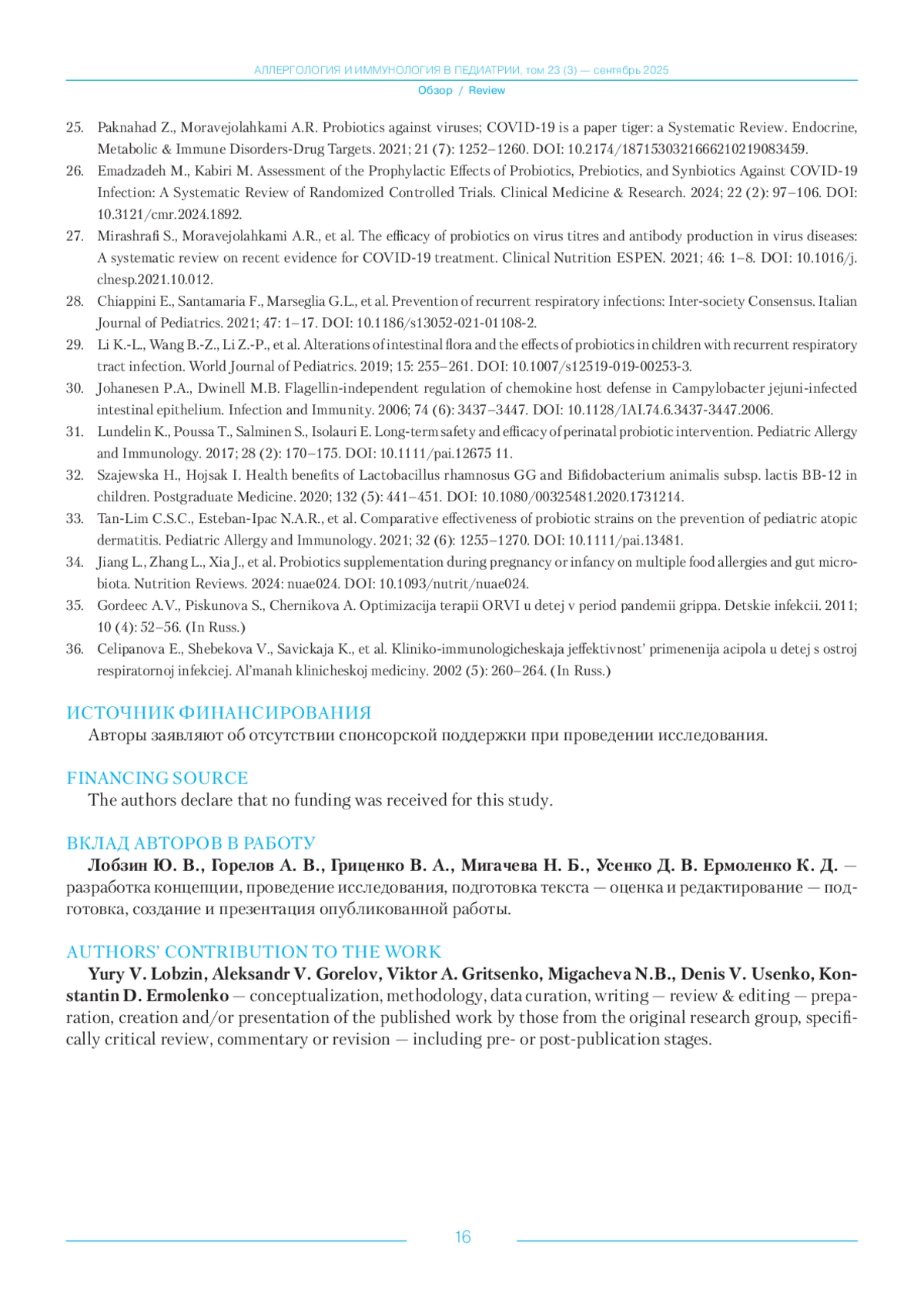36. Целипанова Е., Шебекова В., Савицкая К., et al. Клинико-иммунологическая эффективность применения аципола у детей с острой респираторной инфекцией. Альманах клинической медицины. 2002 (5): 260-264. (DOI не указан.).