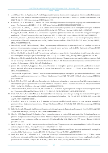 36. Holguin L., Gallego-Types C., Toro Y. et al. Epidemiological, clinical and diagnostic characteristics of children with eosinophilic gastroenteropathy. A retrospective study of three healthcare institutions of high complexity. J St. Alerg Mexico. 2018; 65 (2): 148-159.