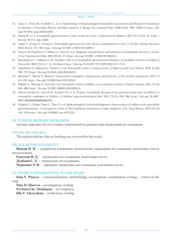 2. Dellon E.S., Gonsalves N., Abonia J.P. et al. International Consensus Recommendations for Eosinophilic Gastrointestinal Disease Nomenclature. J Clin Gastroenterol Hepatol. 2022; 20 (11): 2474-2484.e3. DOI: 10.1016/j.cgh.2022.02.017