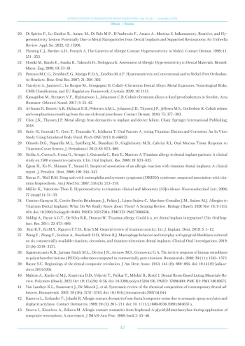 34. Comino-Garayoa R., Cortés-Bretón Brinkmann J., Peláez J., López-Suárez C., Martínez-González J.M., Suárez M.J. Allergies to Titanium Dental Implants: What Do We Really Know about Them? A Scoping Review. Biology (Basel). 2020 Nov 18; 9 (11): 404. 10.3390/biology9110404. PMID: 33217944; PMCID: PMC7698636. DOI: 10.3390/biology9110404.;PMCID PMID: 33217944