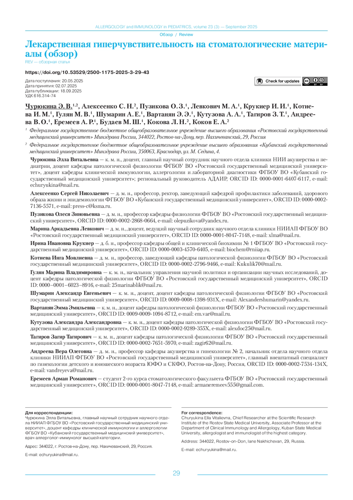 47. Syed M., Chopra R., Sachdev V. Allergic Reactions to Dental Materials. A Systematic Review. J Clin Diagn Res. 2015 Oct; 9 (10): ZE04-9. Epub 2015 Oct 1. PMID: 26557634; PMCID: PMC4625353. DOI: 10.7860/JCDR/2015/15640.6589 PMID: 26557634
