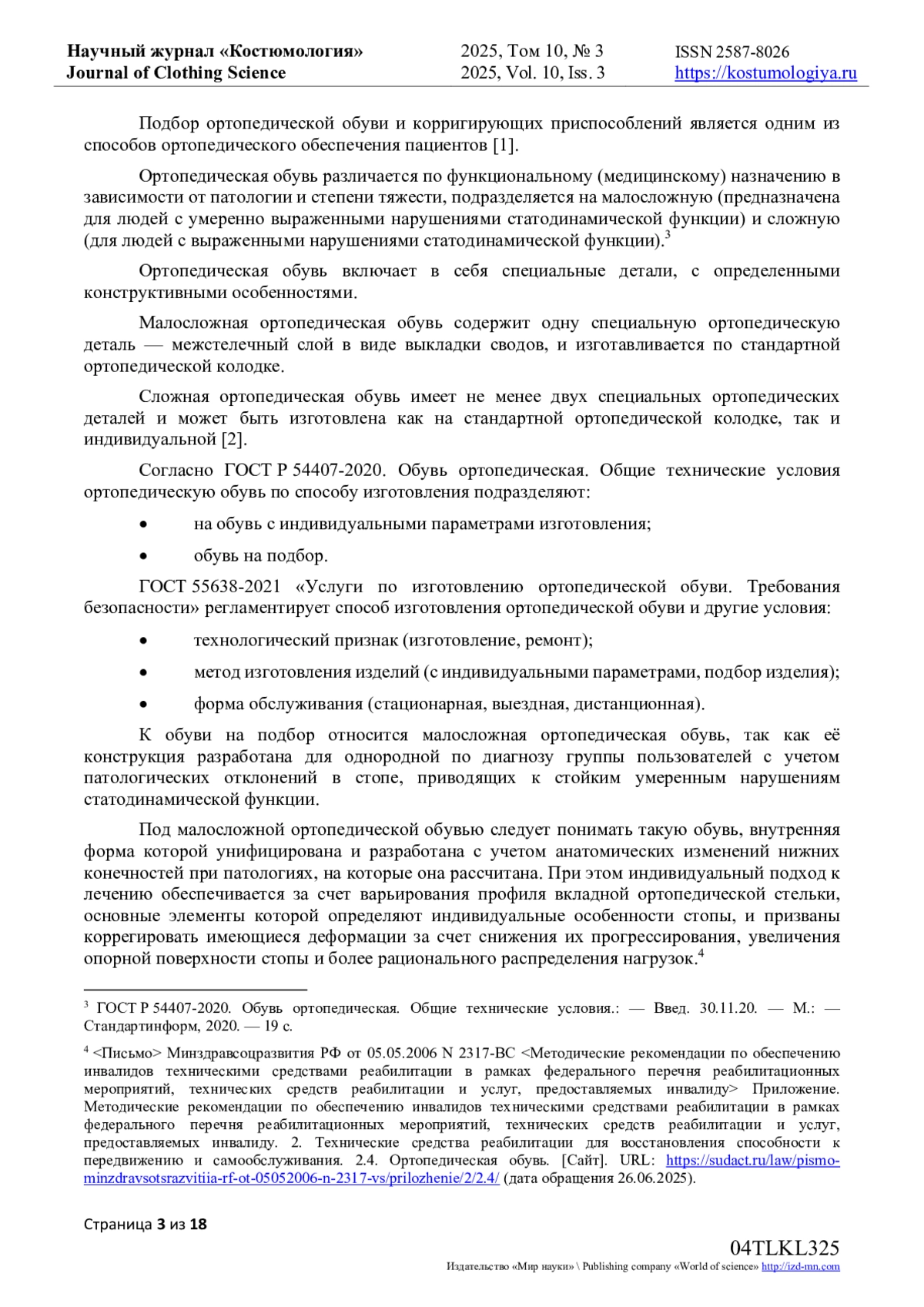 3. Мокшина, А.К. Анализ конструкции малосложной ортопедической обуви / А.К. Мокшина, Ю.С. Конарева // Материалы докладов 56-й Международной научно-технической конференции преподавателей и студентов: в 2 т. - Витебск: ВГТУ, 2023. - Т. 2. - С. 252-255. EDN: RZIXJU